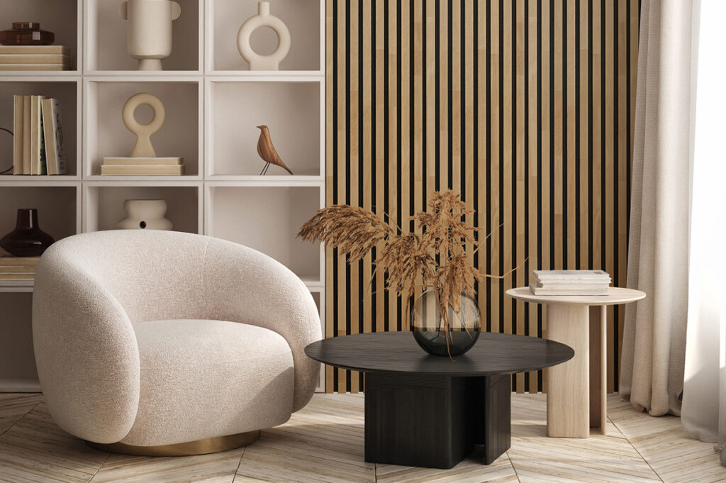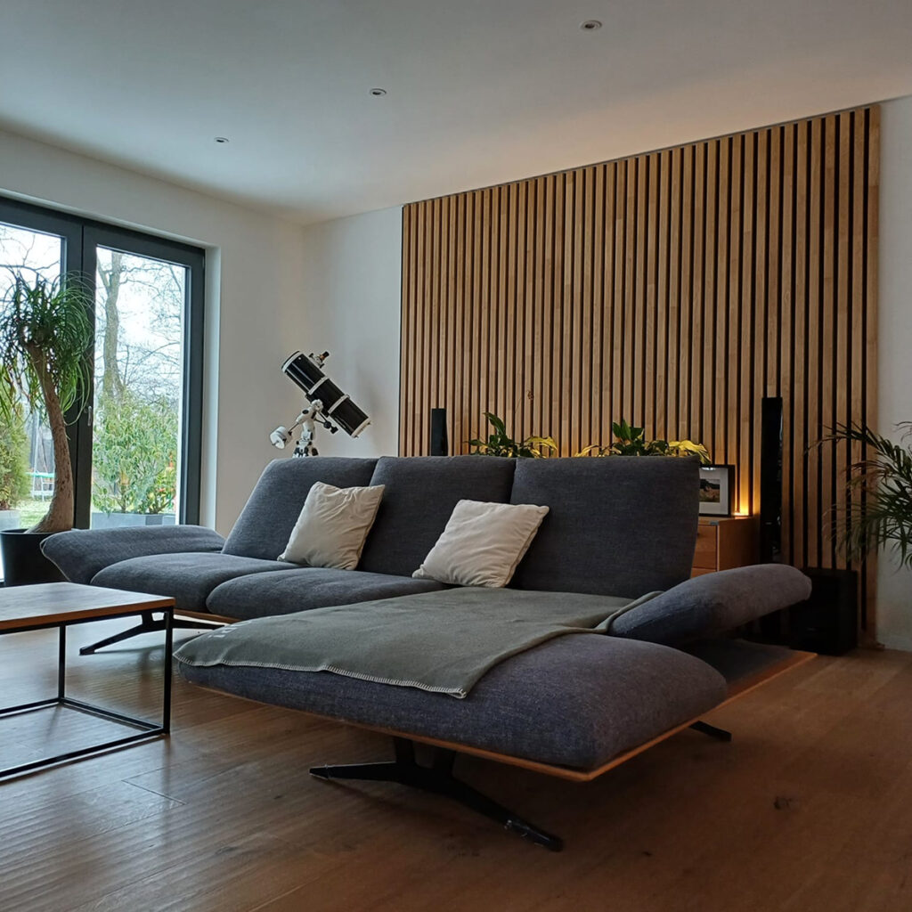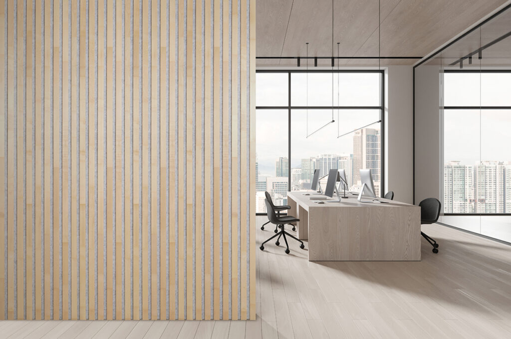 Our wall panels are made from PET felt derived from recycled plastic bottles, combining a modern look with environmental responsibility.