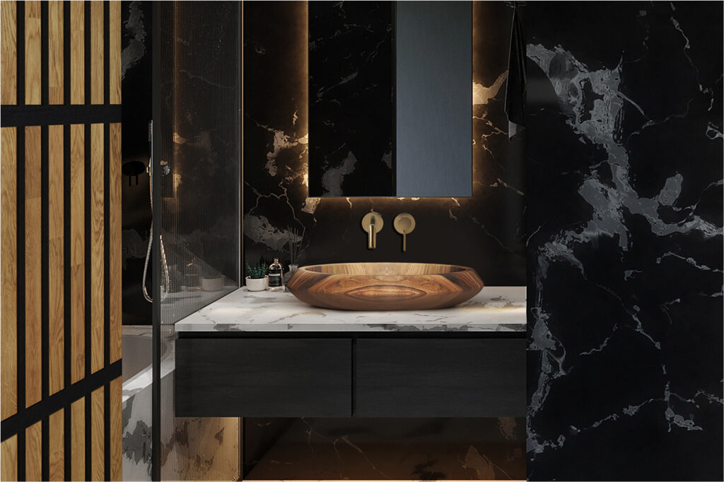 Our washbasins are made from the highest quality European woods, such as oak or heat-treated ash, as well as American walnut.